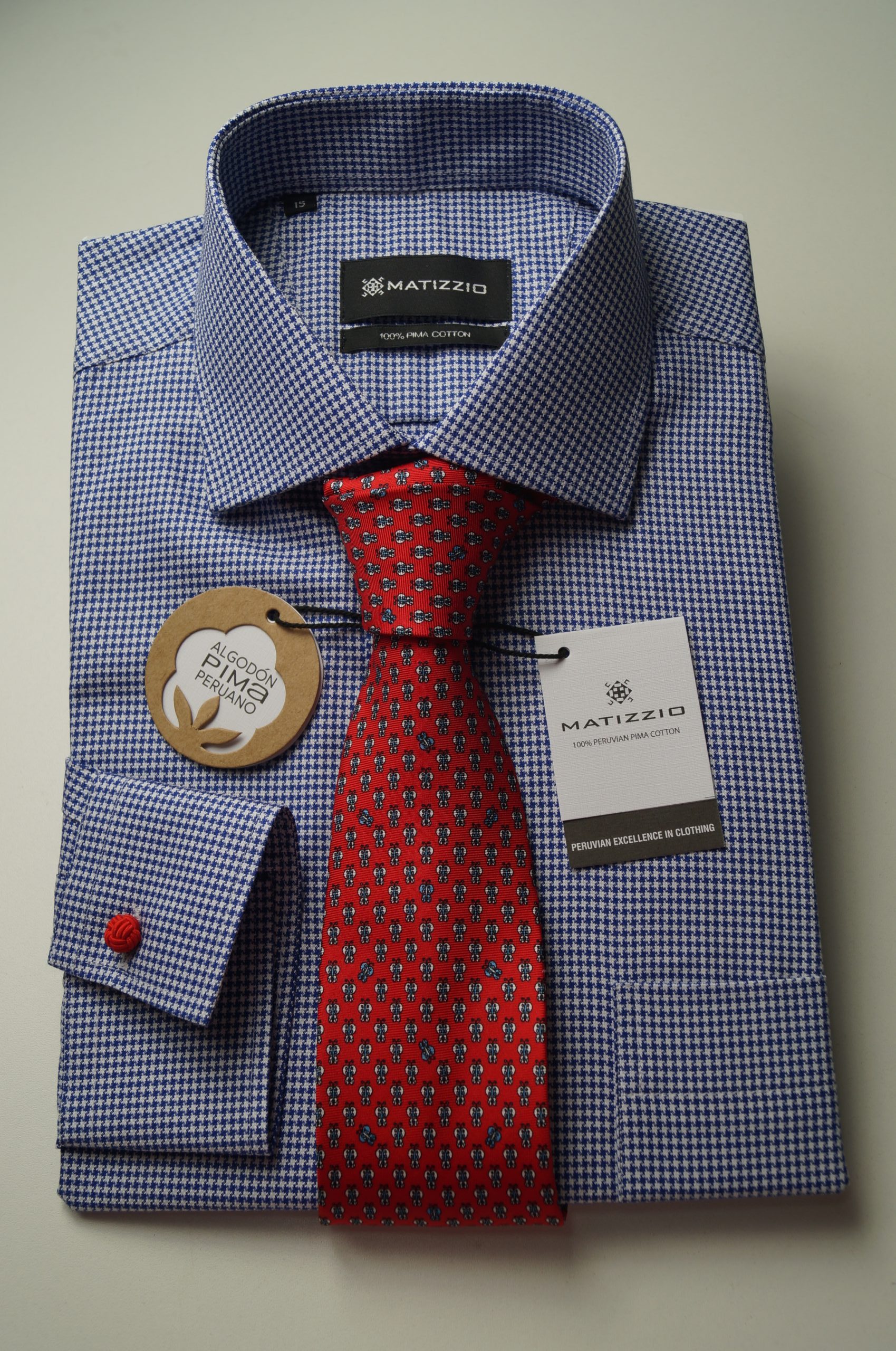 Camisa de vestir, color azul con una línea blanca Matizzio 34( puño para gemelos)