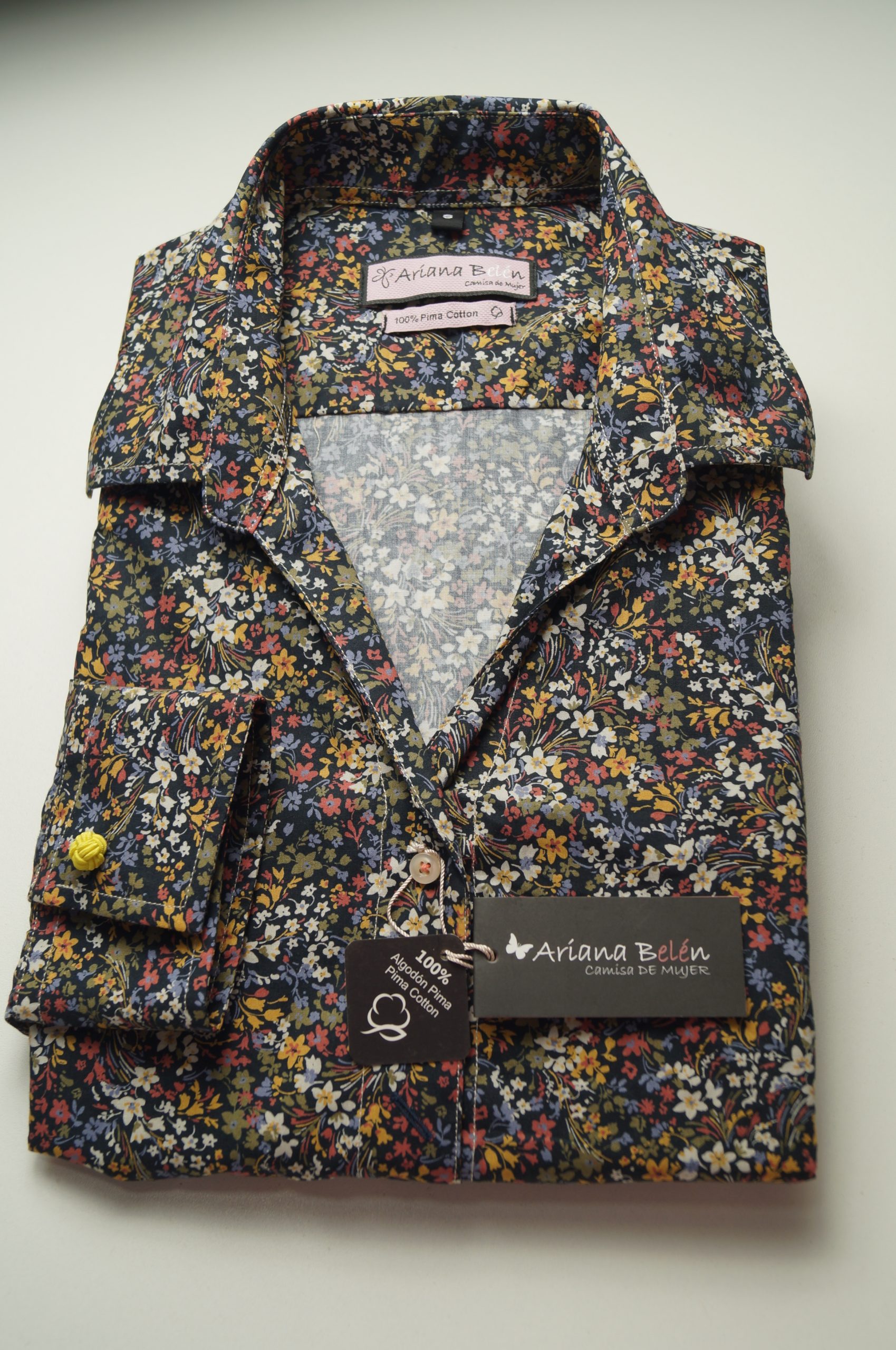 Camisa de mujer Oversize, estampado de flores color azul y rojo, Ariana Belén 78