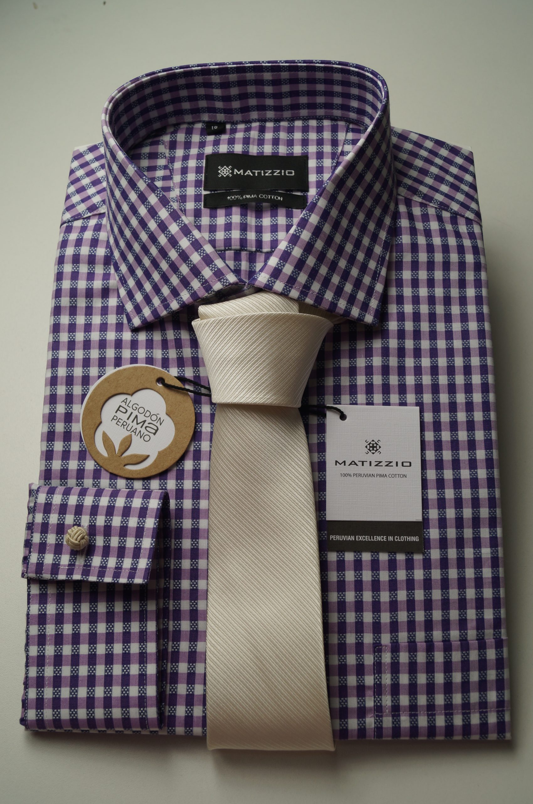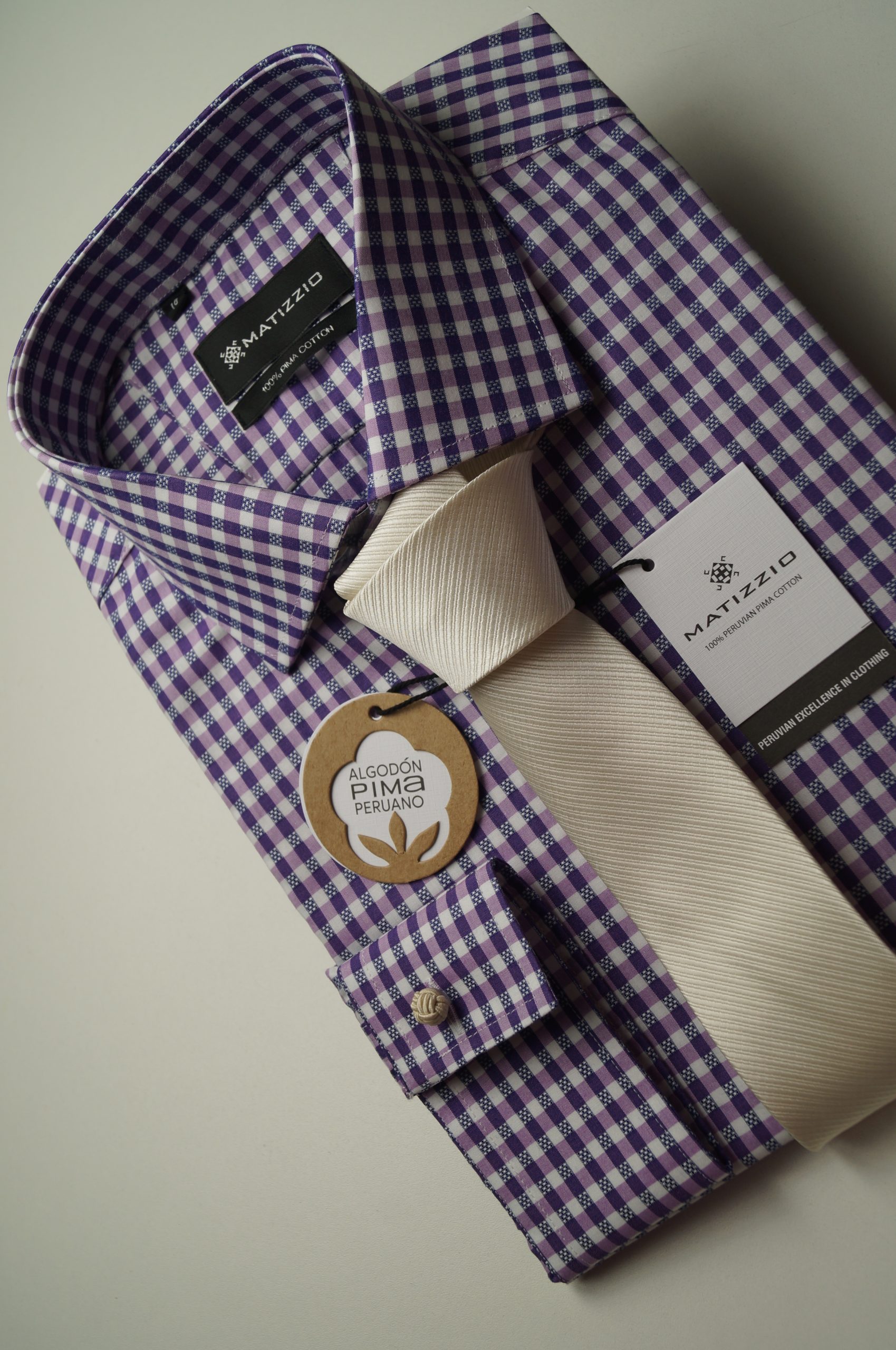 Camisa de vestir, color blanco cuadros morados Matizzio 224