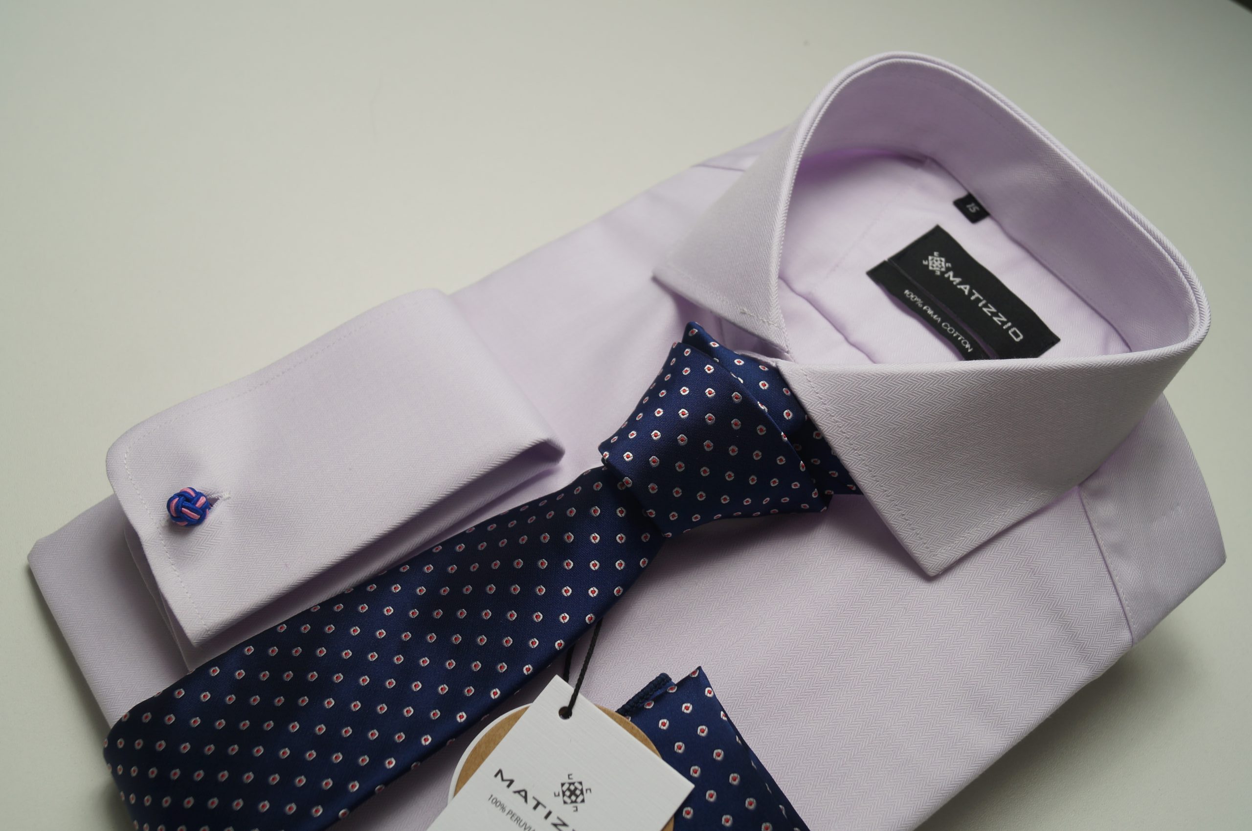 Camisa de vestir, color lila labrado espiga Matizzio 27 ( puño para gemelos)