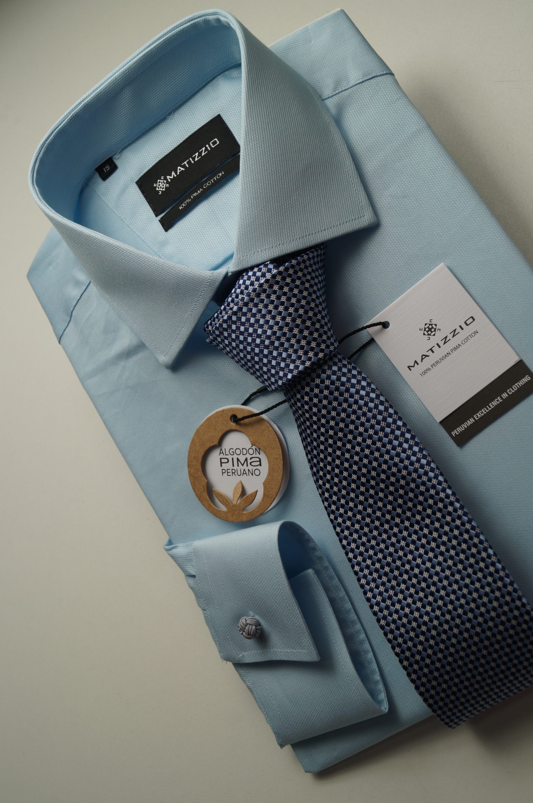 - Camisa fina, formal, diseñada y refinada en sus cortes de extremo a extremo, tejida con el mejor Algodón Pima Peruano, para dar el mejor acabado utilizamos, el botón color perla, el tipo de tela es reactiva al lavado, sus fibras de alta calidad agregan interés a su apariencia, y son naturalmente transpirables. Se sienten suaves al contacto con la piel. Para un acabado fino, esta camisa viene con estancias de cuello que podría utilizar barbillas de PVC , o Metal.