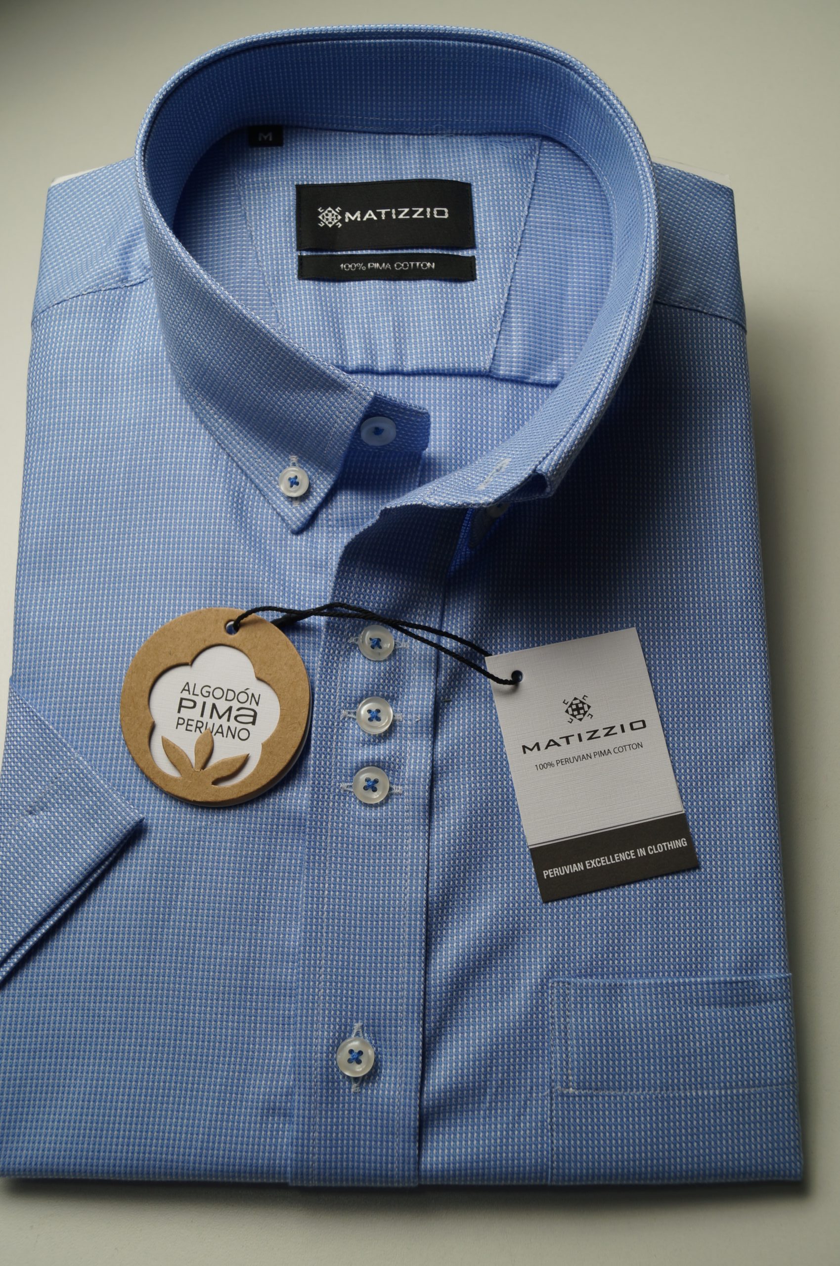 Camisa Matizzio, camisa celeste cuadros pequeños , Manga Corta 109