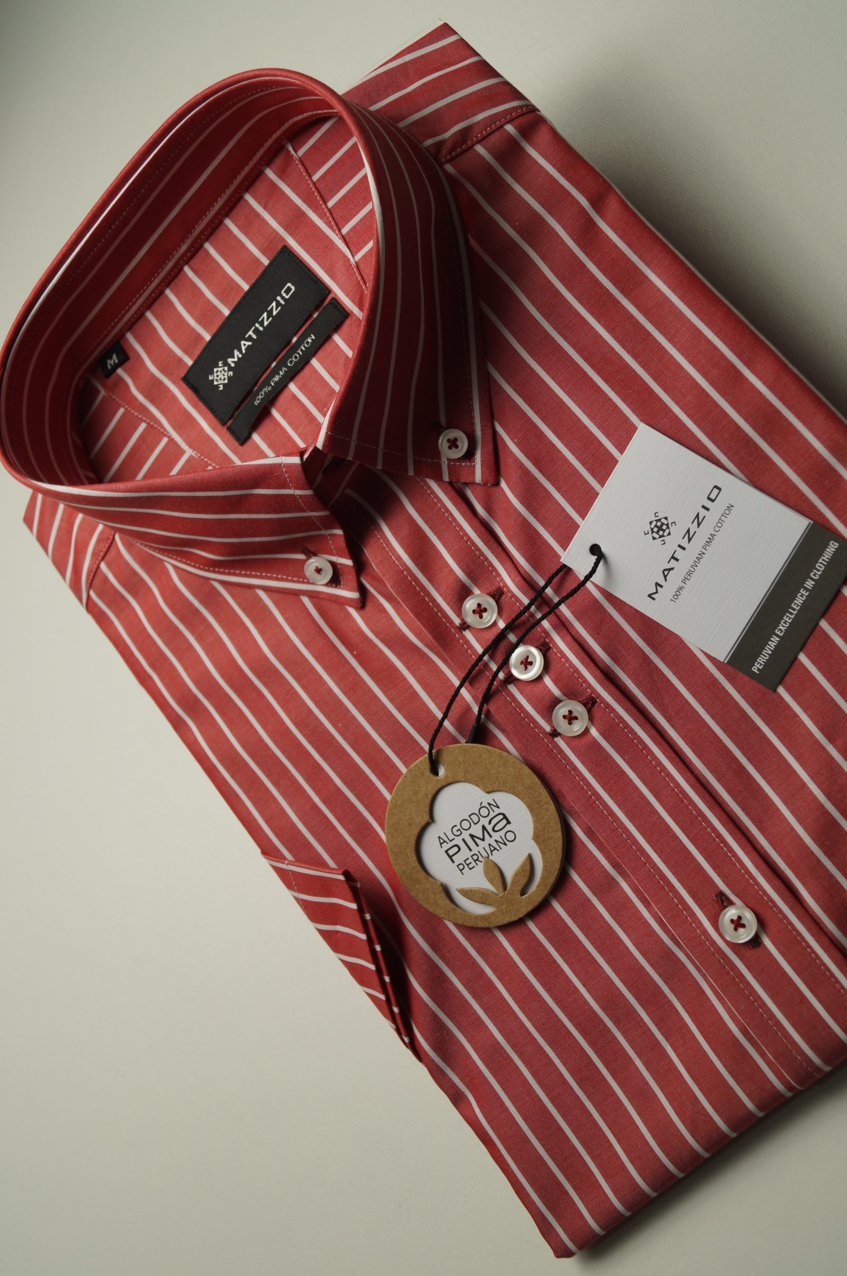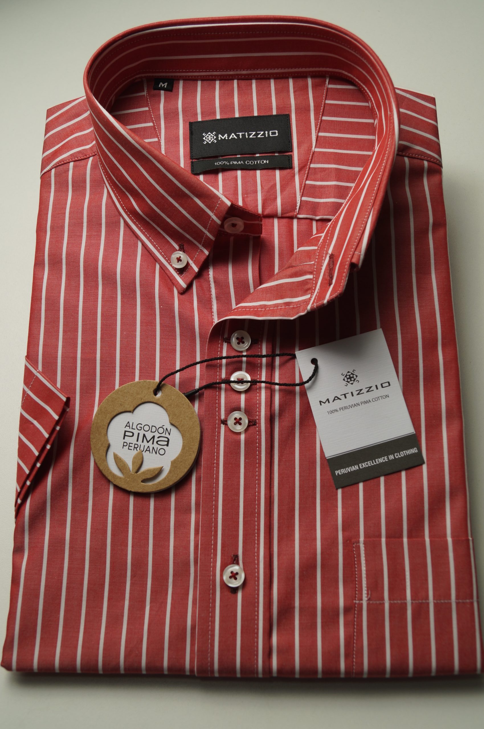Camisa Matizzio, camisa roja línea blanca, Manga Corta 111