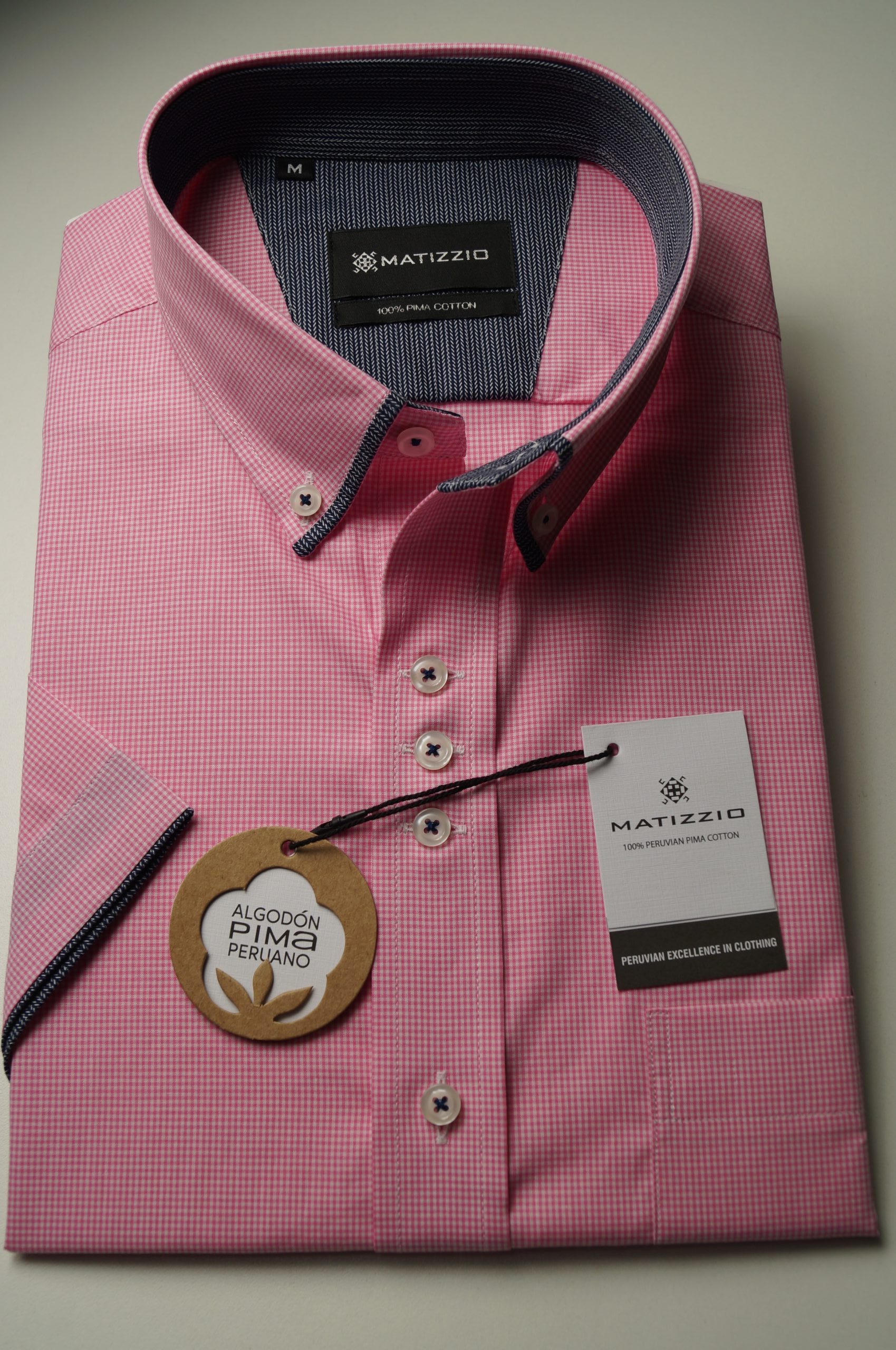 Camisa Matizzio, camisa rosada cuadros pequeños Manga Corta 116